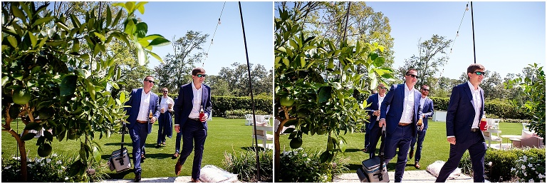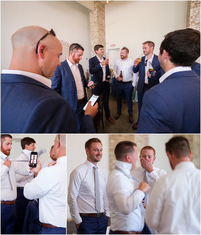 While Abby and her girls spent the morning drinking champagne and enduring the rigors of hair and makeup, Joe and his crew had a slightly different experience. Beers on the beach is a very good way to start your wedding day 😉